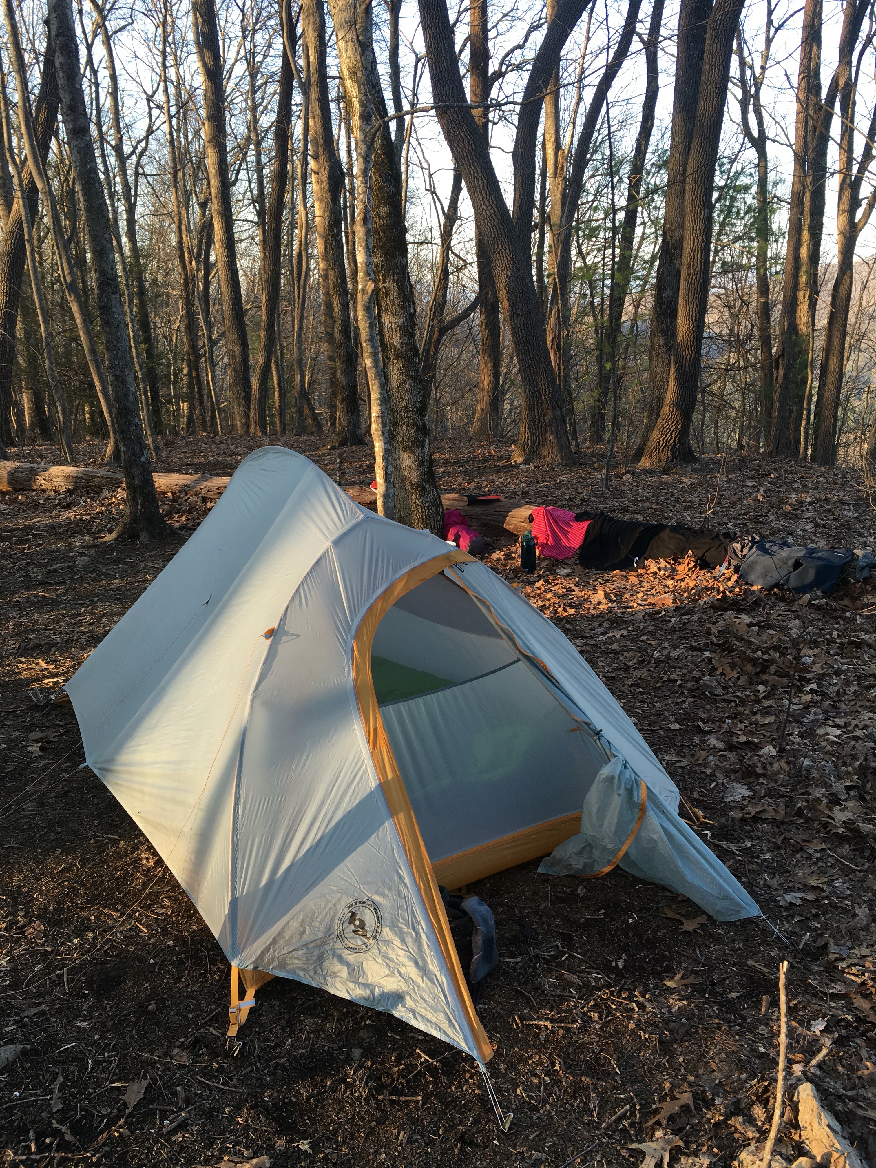 I also strung a bearbag for the first time (there have been cables or bear boxes at each of my previous stops). That was a fun adventure (and my food was still there the next morning so yay)!The walk from my lonely ridge to Sassafras gap was a tough haul, taking in Tray Mtn, the second highest peak on the trail thus far, after an already grueling series of ascents and descents. But the payoff was a nice short 6 mile hike the next day, ending with a night in town (read beer, bath & bed, in that order – small pleasures āŗļø).
