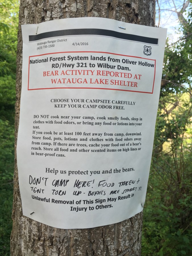 The next day, Alex dropped me back at the trailhead and I hiked the Watauga Lake section (where the shelter is closed due to bear activity).