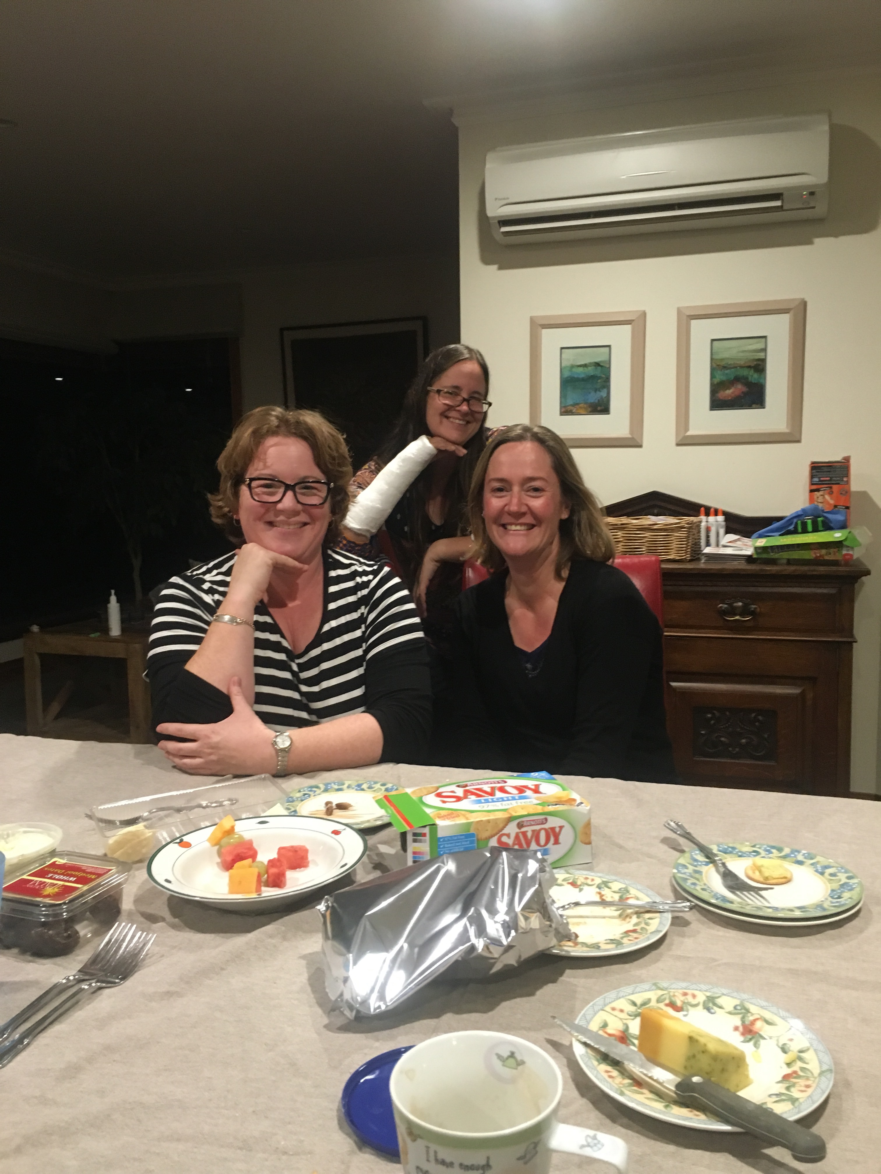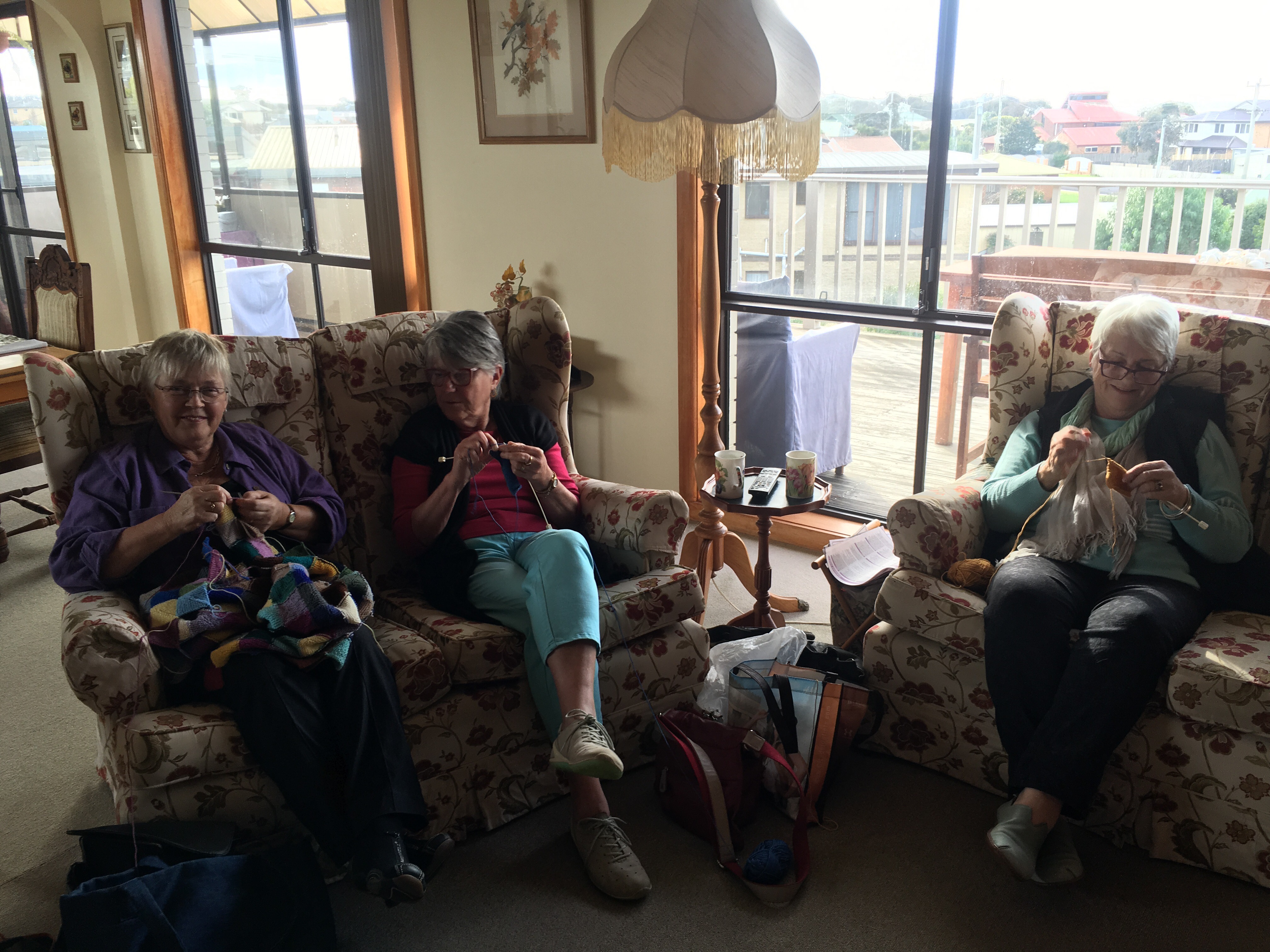 Sue Westlake, Mum and Aunty Trish McColl in Deidre’s lounge for ‘CRAFT’ day (acronym for Champagne, Rolling laughter And Food for Thought) – what you see here is the most craft that went on all day. Soon after this shot, the bubbly was brought out, then a delicious lunch, the knitting was placed back in bags and that was the end of any pretense of work ๐
