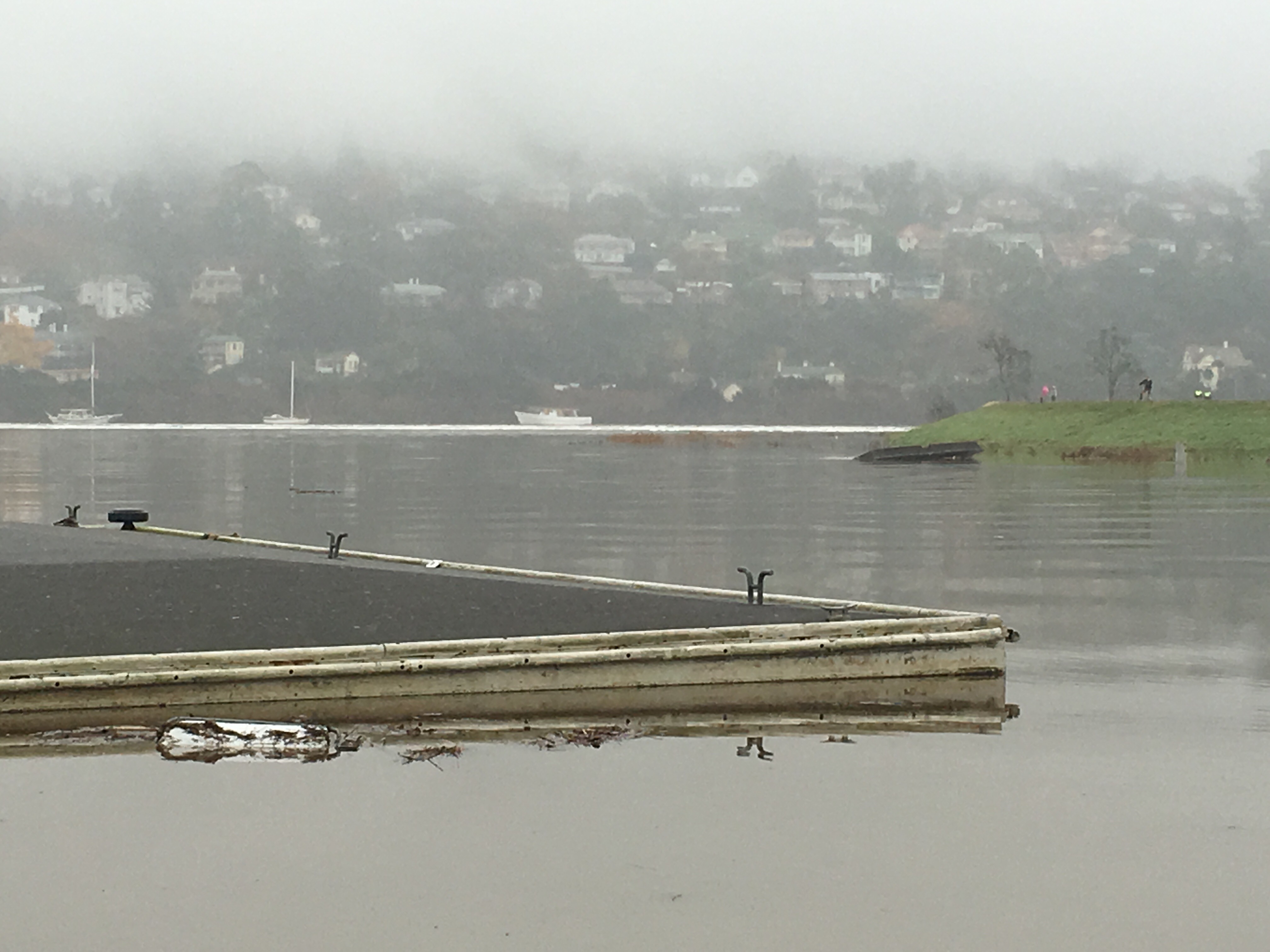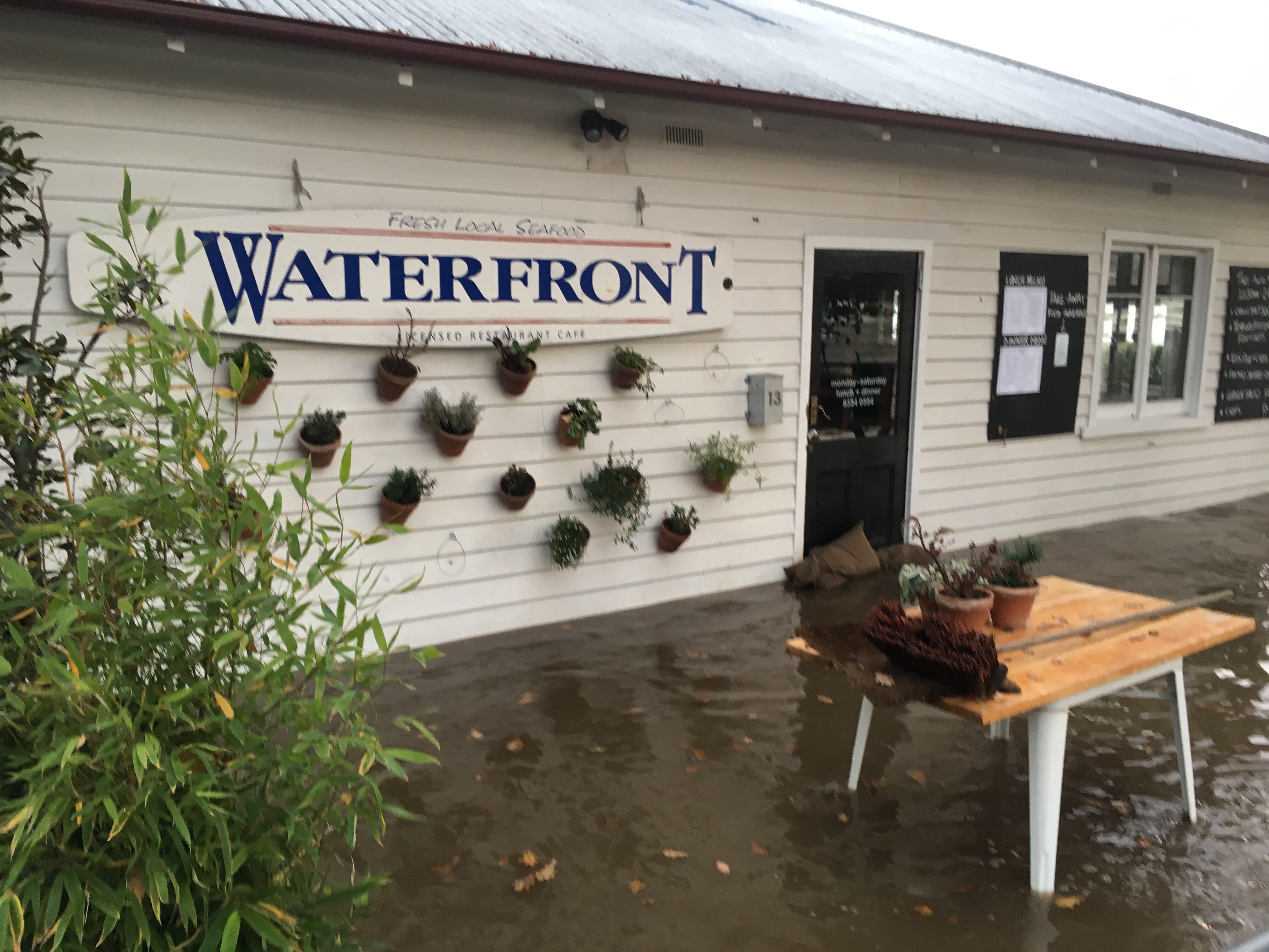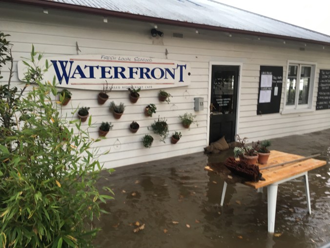 Mum, Dad and I watched the water rise from our vantage point at the fish & chip shop at the seaport as the tide came in on Tuesday:
