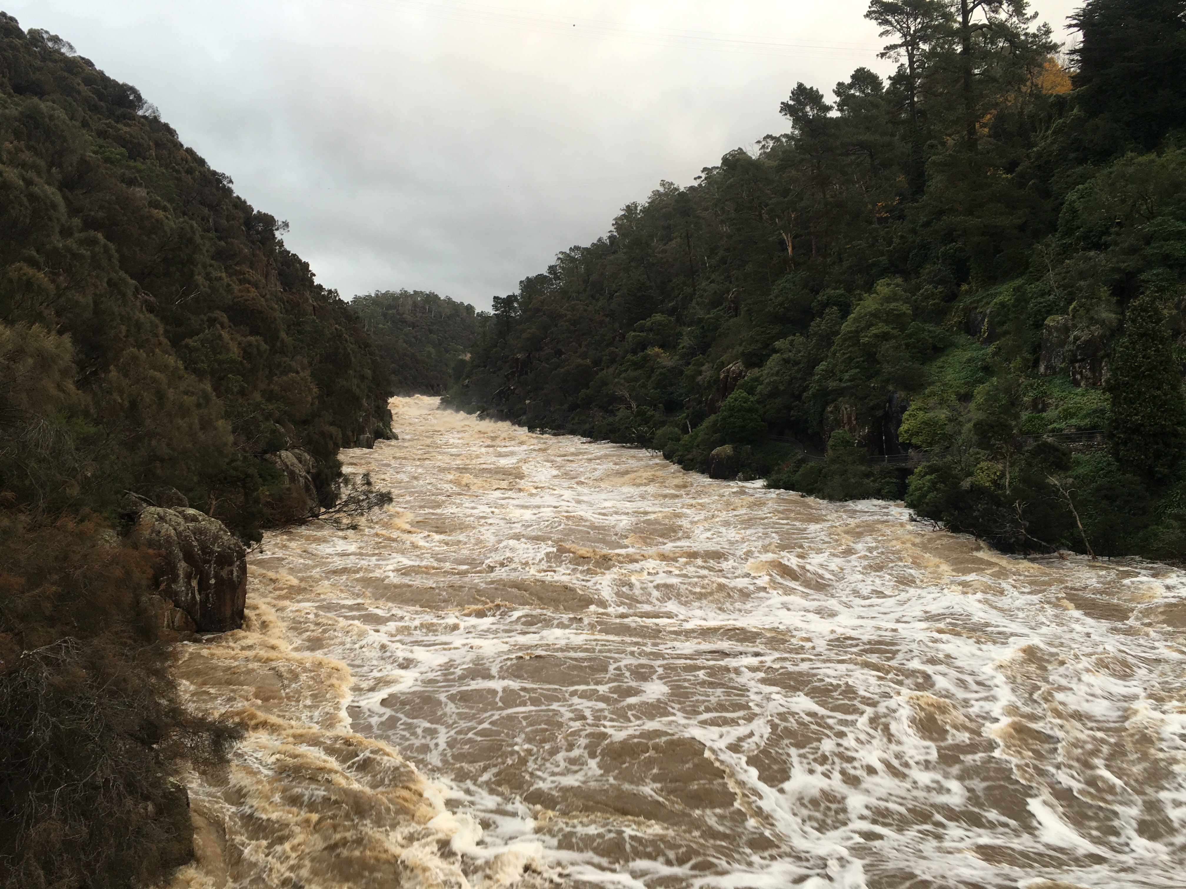 By Monday, with the South Esk spilling over the Trevallyn Dam, it looked more like this: