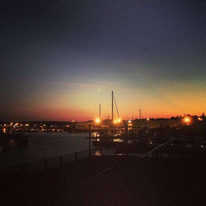 Gloucester Harbour with crescent moon