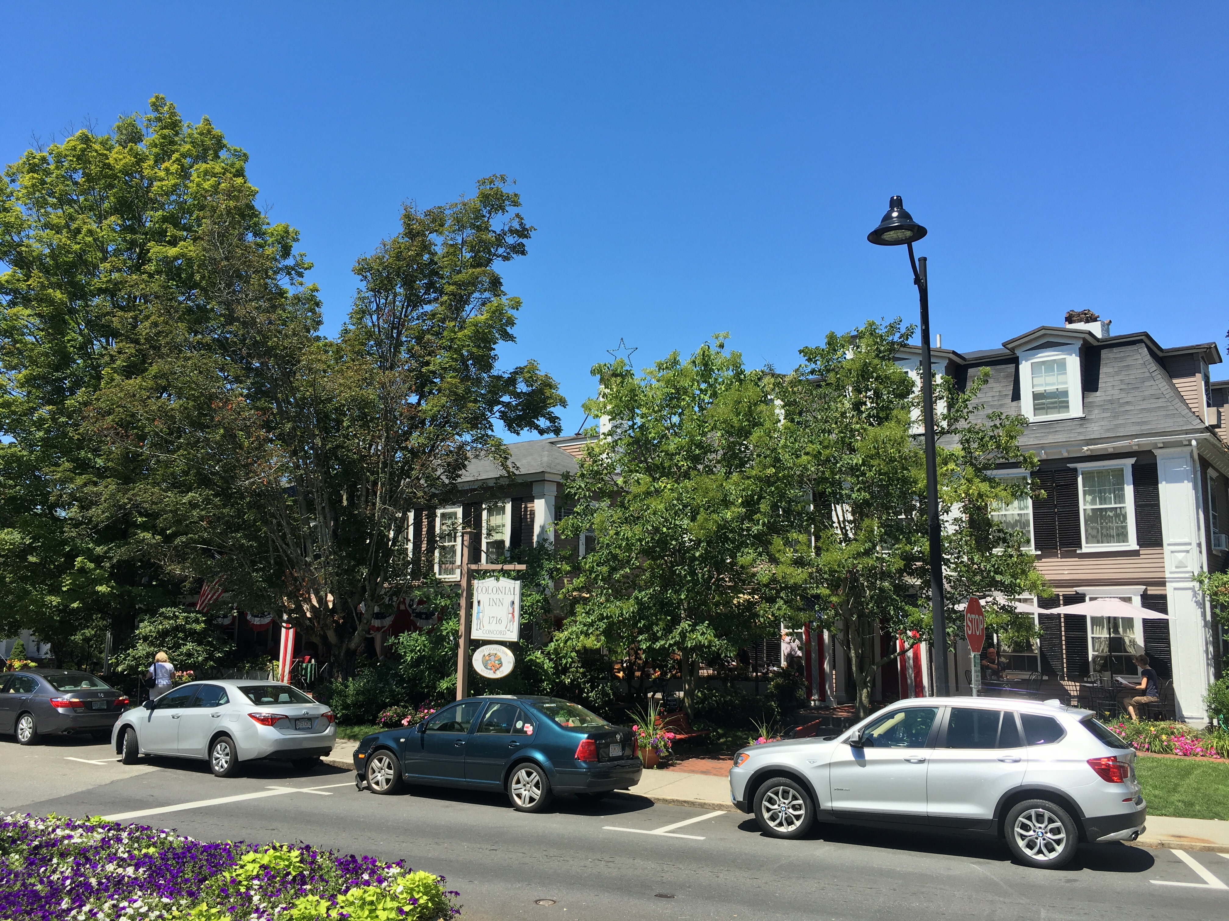 Speaking of stimulating conversation, I had the good fortune to meet and get to know several remarkable people on my last day in Concord. While roaming the Authors’ Ridge at the cemetery, I ran into two fascinating women, Robin (from nearby Watertown) and Stephanie (originally from Germany but currently living in Zurich, Switzerland), and they invited me to join them for lunch at the (apparently haunted) Colonial Inn with their equally fascinating friend Axel (also originally from Germany but now splitting his time between the U.S. and Switzerland).
