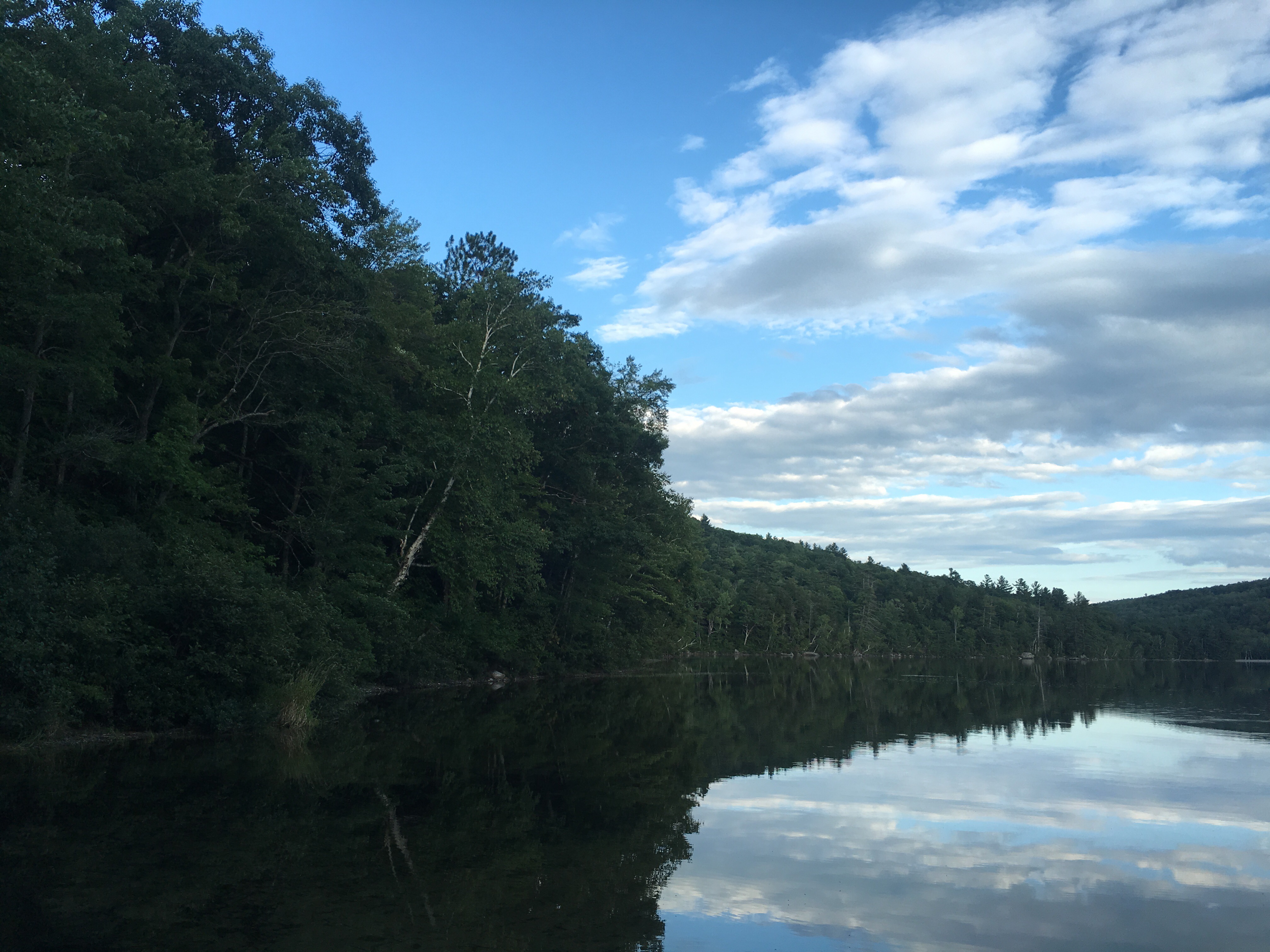 Pleasant Pond lived up to its name. We sat on this wooden pier and had our lunch before each going our separate ways: