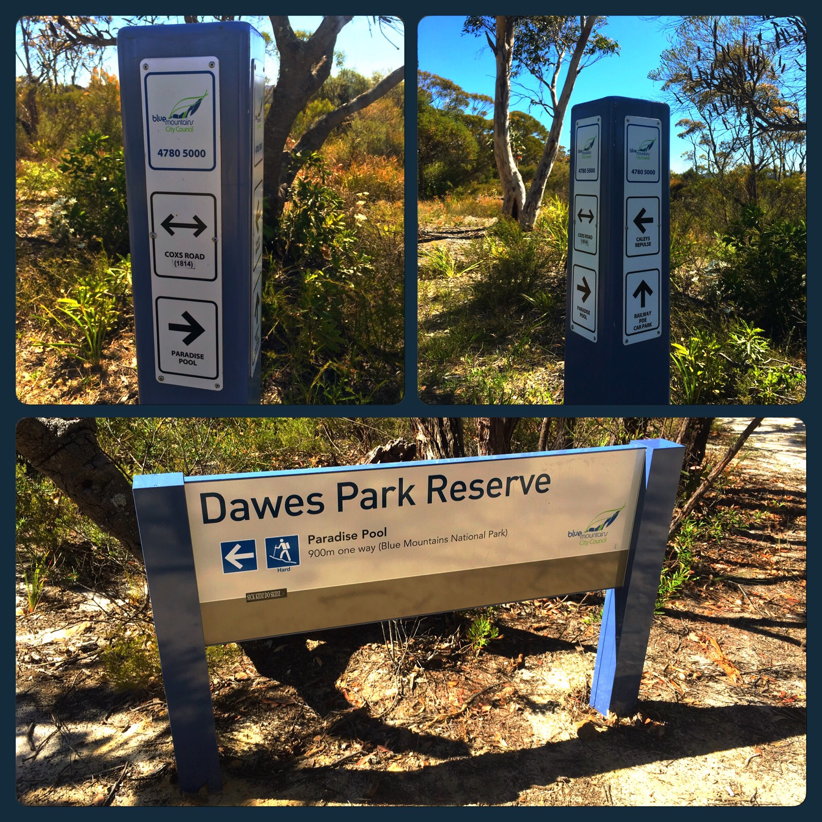Linden locals are mystified as to why Blue Mountains Council put up the signposts directing people to Paradise Pool. Bushwalking & cycling (though there’s really no cycling tracks) are permitted, but the water itself is part of Woodford Dam and is a Schedule 1 ‘no entry’ area. Several swimmers have been booked by NPWS rangers so far this summer, on-the-spot fine is $600.