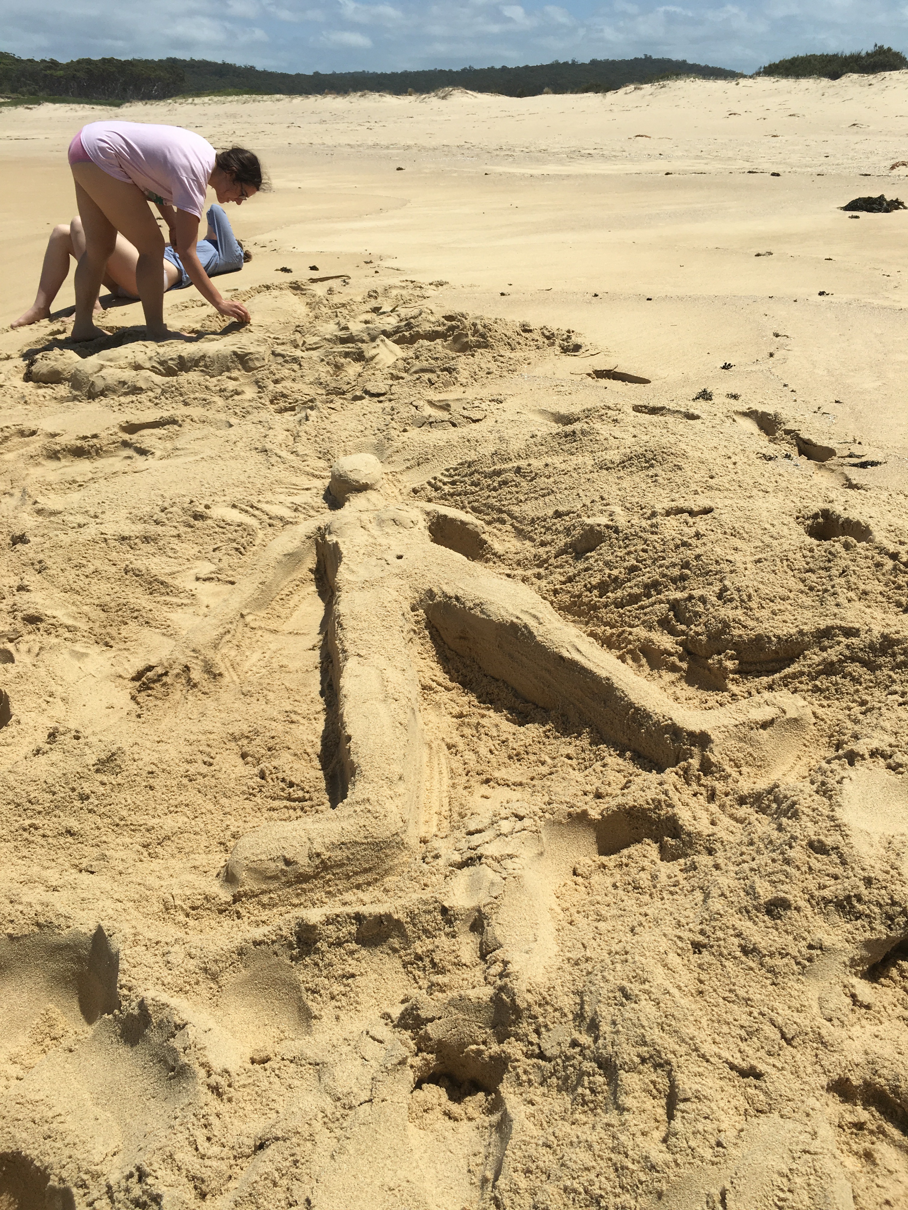 Met some local folk making beach art: sand sculptures courtesy of MC, Violet, Austin and Emily