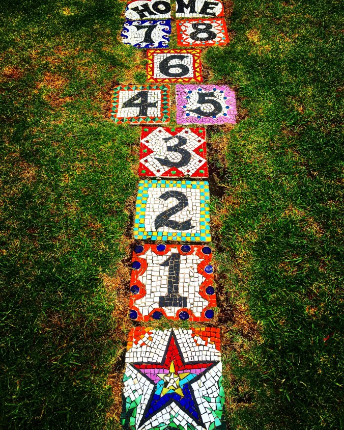 Found this great hopscotch mosaic at Milton’s Settlement courtyard – located behind the shops on the main drag