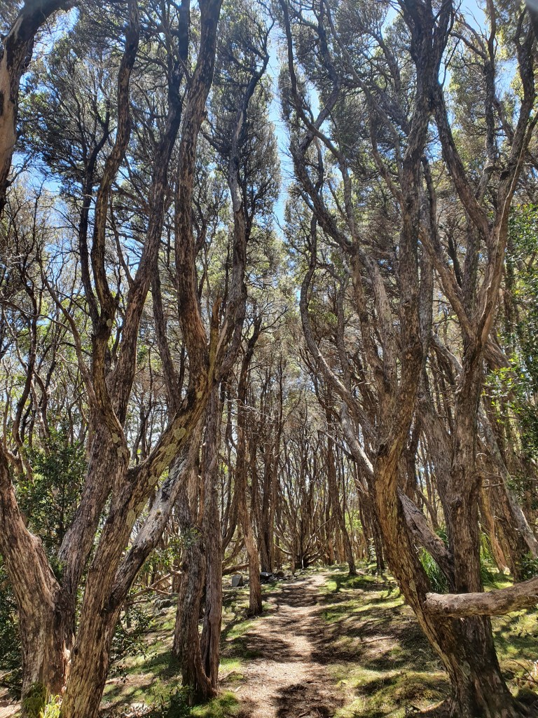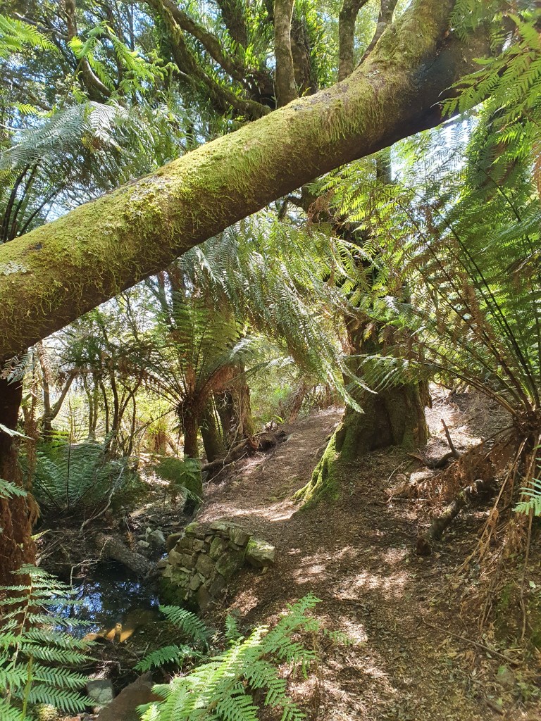 Loo with a view – you’ll need to bring your own TP and hand sanitiser if you’re planning on using this one.New life from old …A well maintained track and clearly signposted.I could not get the grin off my face – how beautiful is this?!!Treehuggers …Ralphs Falls – not much water coming over the edge of the falls but look at those curves!Looking back down the valley from the platform overlooking the falls.Even the retaining walls make use of locally sourced materials, blending in with the surrounding landscape.Part of the waterway feeding the falls – I’d love to see this after a heavy rain.Climbing again after crossing the stream.The wallabies must love this place as much as we humans do.The forest starts to change once you cross the stream, with more light filtering through to the grassy edges of the track.A little more evidence of the trackwork through this section.It’s always so lovely to spend time in the forest on a clear sunny day.The lookout above Cashs Gorge (these absent apostrophes in place names make me a little twitchy … )Cashs Gorge ( … but I try to present them as they appear on the map)There is duckboarding through the button grass almost all the way back to the car park from Cashs Gorge.The trail has been built atop the old bridle path.The varied terrain is one of the absolute highlights of this walk.Other peaks in the distance yet to climb …I think this duckboard nearly rivals the 2km stretch of boardwalk on the Three Capes track for length.