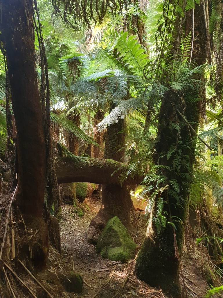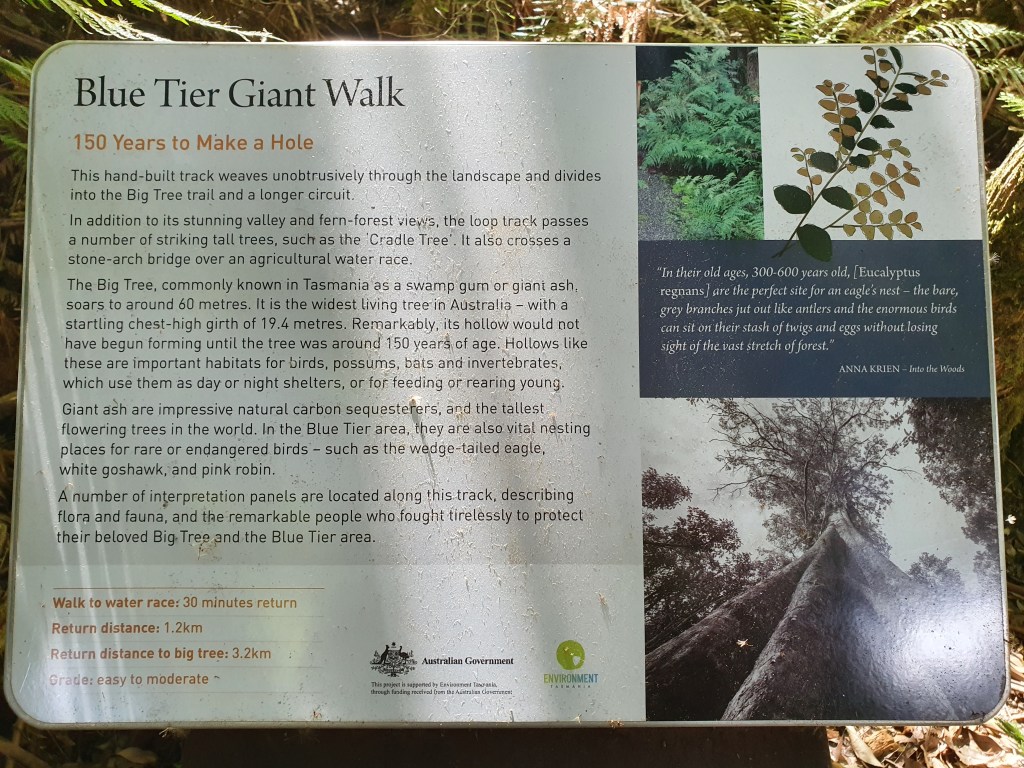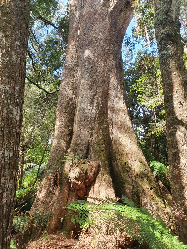 This is not the Big Tree, but its size did grab my attention – this one is located just beyond the car-park opposite the track entrance.Worth a read.This simple little sign leads to a fairy glen.I wished I’d saved my fish wrap to eat here. How sweet is this discovery?!Other big trees line the walk (still not the Big Tree) …… but beautiful specimens in and of themselves.Although there were still a good three hours of daylight left in the day, it got progressively darker as I descended through the dense forest.Mossy and ferny and cool and damp on a hot day.According to the signage at the start of the walk, the Big Tree has a girth of over 19m and is the widest living tree in Australia.The Big Tree has become something of a symbol in the fight against clearfell logging in the Blue Tier region. With so much of the surrounding land having already been cleared, this remains one of the last remaining pockets of Forest Reserve. You can read more about the dispute here.I just couldn’t do it justice with my phone camera …What a privilege to be in the company of something so ancient.The hollow you see here would only have started to form when the tree reached 150 years of age.Friends of The Blue Tier.I’m so glad I took the three km detour off the main road to check this out.